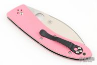 This Large Lum Chinese Folder by Spyderco features a satin finished blade with false top edge and thumbhole. Pink G-10 scales, stainless steel liners and black coated stainless steel pocket clip, 4-way reversible. Includes original box. New condition.