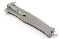 This assisted opening HTM (Hand Tech Made) Madd Maxx features a bayonet style bead blast finished blade with the top edge only sharpened at point, and a bead blast finished titanium frame with a 3D machined carbon fiber scale on one side. Black Stainless steel clip. Strong and fast opening. Comes with TRN zipper case. Has some light scuffs, excellent condition otherwise.