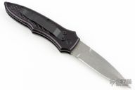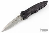 This Cobra side-opening automatic by Paragon Cutlery features a stonewashed blade with swedge. Coil spring. Sliding safety. Black aluminum handle with textured inserts, tip down black stainless steel clip. Has a couple light scuffs, excellent condition otherwise.