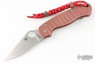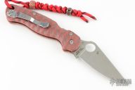 This Paramilitary 2 from Spyderco has a satin finished clip point blade with thumbhole and notched thumb rest. The handle has Chroma Red Dragon scales, stainless steel liners and stainless steel 4-way reversible clip. Comes with original box, scales and papers. Has a couple light scratches, has some dings in the blade edge, needs to be resharpened, otherwise good condition.