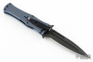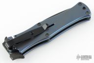 This HTM (Hand Tech Made) Madd Maxx features a bayonet style black coated blade with the top edge only sharpened at point, and an anodized titanium frame with a 3D machined carbon fiber scale on one side. Black Stainless steel clip. Comes with original box, papers, and zipper case. Has a couple light scuffs, excellent condition otherwise.