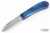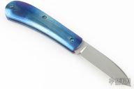 This Zulu Spear from Pepe Jalomo features a hand rub satin finished blade with nail nick. The handle has oil slick finished zirconium covers, stainless steel spring. Spring is flush in the closed, half stop, and open positions. Excellent condition. Comes with a zippered case. #321