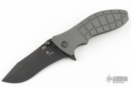 This Kirby Lambert model SNAP flipper features a black recurve blade with dual thumbstuds and a flipper. The handle has a gray aluminum frame. Black stainless steel tip up clip. Comes with nylon zippered case and original box and papers. Has a couple light scuffs, excellent condition otherwise.