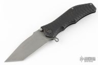 This Gunhammer from HTM Knives features a bead blast finished tanto blade with notched thumbrest and flipper. Machined aluminum frame, tip up or down reversible black stainless steel clip. Notched thumbrest. Strong and fast assisted opening. Comes with original box, papers, and zipper case. Has some light scuffs and scratches, great condition otherwise.