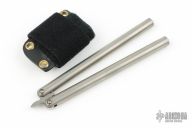This Nutcracker by John Gray is made of titanium with carbide glass breaker tips on the ends. Comes with a kydex sheath. Its a ton of fun to flip around like a balisong, but it will also crack nuts! Also make a good impact tool. Excellent condition.