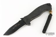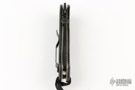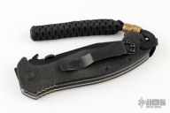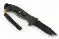 This Mini CQC-15 BTS from Emerson features a black recurve tanto blade with notched thumbrest, thumbhole and wave feature. The handle has black G-10 scales, titanium liners, black G-10 backspacer, and a tip up black stainless steel clip. Nice detent, lockup and blade seating. Serial Number 1503. Has scuffs and scratches, and is a little dirty. Great condition otherwise.