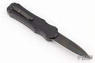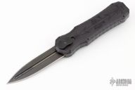 This Excalibur OTF features a black aluminum handle with a black coated spear point double edged blade. Tip down titanium clip. Excellent condition. Comes with original papers.