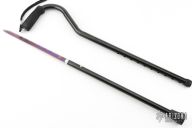 This Defensive Sword Cane by Warren Thomas features a spear point chisel ground fingerprint anodized titanium blade with mother board laminate, .231" blade stock and .731" blade depth, hidden tang construction. The handle is a normal looking cane. Excellent condition. The cane can be as long as 37.5" down to 33.5"