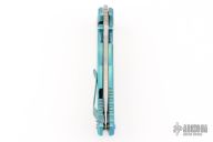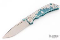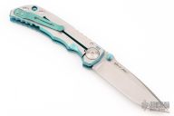 This Harsey framelock folder by Spartan Blades features a stonewashed drop point Magnacut blade with dual thumbstuds and a notched thumbrest. The handle has an anodized titanium frame with a laser engraving a tip up titanium clip and filler tab. Has nice detent, lockup, and blade seating. Comes with original box. Excellent condition.