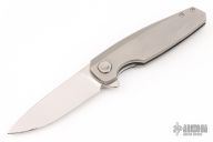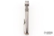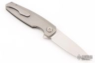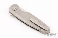 This Morpheus by Holt Bladeworks features a near mirror polished stonewashed blade with a notched thumbrest and flipper tab. The handle features a Quill milled titanium frame with nude finish tip up pocket clip and hardware. Nice detent, lock up and blade seating. Includes the original zipper case and COA. Excellent condition.
