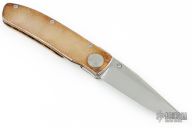 This Model ACC is a Walker Design with a satin blade and copper(?) scales, titanium liner and stainless steel backspacer. Nice detent, lockup and blade seating. Comes with original box, COA and leather case. Has some patina, otherwise excellent condition.