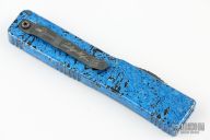 This Custom Ultratech from Marfione Custom Knives features a Damascus drop point blade with swedge and fullers. The handle is comprised of splash anodized aluminum with bead blast tip down clip and thumb slide. Marked "87" on the clip, dagger logo. Has a couple light scuffs, excellent condition.