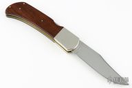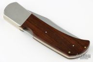 This lockback by R Fulton features a mirror polished blade with nail nick. The handle has dovetailed nickel silver bolsters, rosewood scales, brass liners, stainless steel backspacer. Has a couple light scratches, otherwise excellent condition.