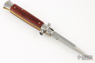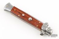 This Swivel Bolster features a bayonet style blade with a false top edge. The handle has aluminum bolsters and pommel with wood scales over brass liners and stainless steel backspacer. Excellent Condition.