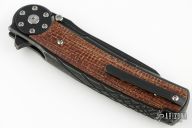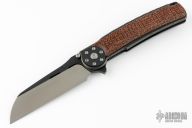 Reate Knives have given their immensely popular J.A.C.K. design a face lift with the stylishly updated J.A.C.K. 2.0. It's got a blade unlike any other on the market, with a thick piece of titanium pivoted to the handle, and the steel portion bolted to it. This 2.0 model is outfitted with a hand satin finished M390 steel blade and a darkwashed integral titanium handle with burlap micarta scales. Includes a metal comb blade that can be swapped in.  Includes a padded zippered case and box.  Excellent Condition.