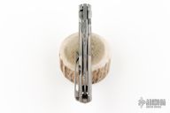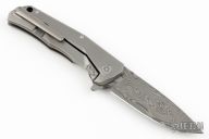The Three Rapid Exchange (TRE) by LionSteel is equipped with a patented system that allows the user to carry the knife with or without the flipper feature, thus choosing to screw or remove it from the blade. This marks the first knife to have a removable flipper mechanism. The knife has a fully machined titanium frame, pocket clip and spacer. The blade steel has been upgraded to Thor patterned Damasteel to give this knife an ultra high-end appearance. It features the IKBS ball-bearing pivot system to improve the knife opening and closing and gives the TRE knife an ultra-fast opening action. The user may choose three ways to equip his knife: a simple basic version without flipper and pin on the blade, a thumb stud version with the pin on the blade or adding the flipper for a quick opening action. The knife comes with an elegant and attractive wooden box equipped with a keychain with both Torx T6 and T8 bits for the positioning or the removal of the flipper, the thumb stud or the clip. Designed by Michele 'Molletta' Pensato.