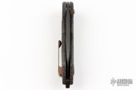 This Radius model has a copper shred carbon fiber handle and a black M390 blade.