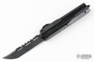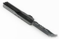 This Medusa by Maxace features a tanto edged TAC Coated blade. The handle has a dark grey aluminum frame with black aluminum inlays. Comes with original box, zippered case and papers. Excellent condition.