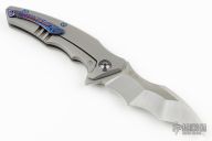 This Dragon by Maxace features a satin finished blade with notched flipper. The handle has a bead blasted titanium frame with timascus pivot collars and tip up clip, anodized titanium backspacer and hardware. Comes with original box and papers. Excellent condition.