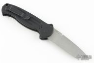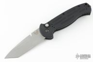 This 9052 AFO II Auto by Benchmade has a bead blasted tanto blade with a false top edge. Black anodized aluminum handle. Integrated safety system. Black stainless steel clip - 4 way reversible, and lanyard hole. Includes a Benchmade box and sheath. Has a few light suffs, otherwise excellent condition.