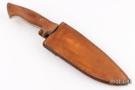 This Fighter by Matt Lamey features a satin finished clip point blade with forge finished flats and a sharpened top edge, .246" blade stock and 1.982" blade depth, full tang construction. The handle has natural canvas micarta scales. Comes with a brown leather sheath. Excellent condition.