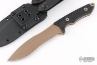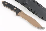 The Ronin Shinto by Spartan Blades features a tungsten PVD coated re-curved blade with a false top edge and a full tang construction. .187" Blade Stock 1.148" Blade Depth. The handle is composed of black canvas micarta. Includes original nylon sheath. Excellent condition.