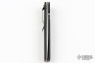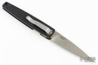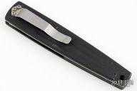 Boguszewski design folder by Benchmade with satin finished blade, single thumbstud. Black coated aluminum handle with linerlock. Tip down carry black stainless steel clip. Has some minor wear on the frame, otherwise excellent condition. Comes with a period correct Benchmade box, but its for a different model.