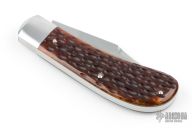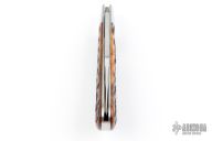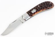 This Lanny's Clip by Enrique Pena features a hand rub satin finished blade with nail nick. The handle has polished stainless steel bolsters, jigged bone covers, stainless steel escutcheon, liners and spring. Half-stop, flush in all positions. Comes with a zippered case. Excellent condition.