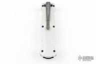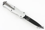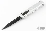 "Introducing an OTF like none-other.. The new Infidel® is rapidly making believers out of many a skeptic. Built for strength and reliability the patent pending double-action mechanics get it done over the long haul. Grab on and you will find the handle grip rock-solid with its patented machined in Presidio® style bi-directional tread pattern, and overall generous sizing for gloved hands. Intuitively pressure the release-slide forward and its spear-point edged steel fires and locks up with a unique three-point retention system with amazingly negligible blade play. Reverse the process and the blade retracts in a rapid blur of motion. The Benchmade Infidel is a special operator’s fantasy come true." Black coated blade. Limited Edition #1356. Excellent condition.
