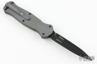 "Introducing an OTF like none-other.. The new Infidel® is rapidly making believers out of many a skeptic. Built for strength and reliability the patent pending double-action mechanics get it done over the long haul. Grab on and you will find the handle grip rock-solid with its patented machined in Presidio® style bi-directional tread pattern, and overall generous sizing for gloved hands. Intuitively pressure the release-slide forward and its spear-point edged steel fires and locks up with a unique three-point retention system with amazingly negligible blade play. Reverse the process and the blade retracts in a rapid blur of motion. The Benchmade Infidel is a special operator’s fantasy come true."  Has a couple light scuffs, otherwise excellent condition.