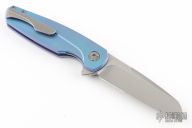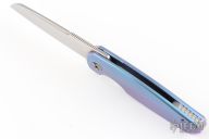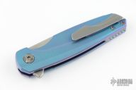 This Haptic by Holt Bladeworks features a tumbled blade with a notched thumbrest and flipper tab. The handle features a milled and anodized titanium frame with a titanium tip up pocket clip with hidden hardware. Nice detent, lock up and blade seating. Includes the original box, tool and card. Excellent Condition.