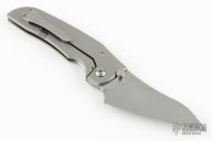 This Thuck by John Gray Knives features a satin finished Magnacut blade with dual thumb studs. The handle has a satin finished titanium frame with carbon fiber inlay, lightly bark finished titanium lockside with matching tip up clip. Nice detent, lockup and blade seating. Rides on bearings. Comes with a zippered case and COA dated 7-11-24. New from maker!