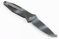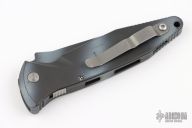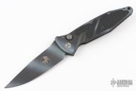 Mini Socom Elite automatic from Microtech features a clip point blade with an aluminum handle with non-slip inlays. Blade and handle are urban camo. Tip up clip. Dated 02/2004. Includes original sheath. Nice seating and strong auto action. Has some scuffs, otherwise good condition.