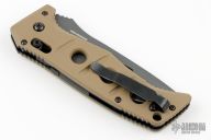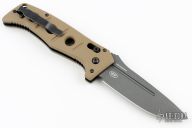 This Siebert designed 2750 Adamas Auto Axis Lock has a dark grey coated drop point blade with fullers and notched thumbrest. Handle is G-10 over black stainless steel liners, reversible tip up black stainless steel clip, and spine safety button. Excellent condition.