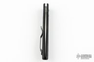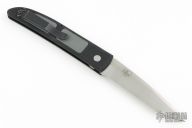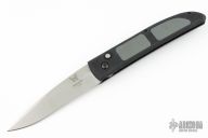 This 3000-BLK Auto has a satin finished drop point blade. Handle is black anodized alumiunum with grey non-slip inserts and black stainless steel tip up clip. Excellent condition. Comes with original box and papers.