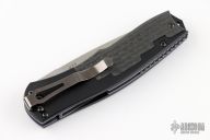 Limited edition assisted linerlock with modified drop point M390 blade.  Handle is black aluminum and detailed carbon fiber.  Green/blue anodized titanium liners with notched backspacer. Nitrous Assist opening make it almost effortless to pop open the blade. Great lockup. #086. Comes with original box and papers. Excellent Condition.