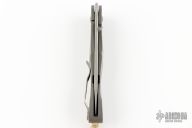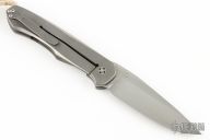 This Lochsa integral framelock folder by Scott Cook features a hand rub satin finished blade with a notched thumbstud. The handle has an integral two-tone titanium frame with a matching titanium clip, tip up carry. Nice detent, lockup and blade seating. Excellent condition. Comes with original box and COA dated January 2009.