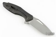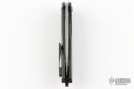 This Arius by Koenig knives features a burnished blade with PF finish, thumbhole and flipper. The handle has a nicely milled DLC titanium frame with a titanium tip up clip, DLC titanium hardware and backspacer. Has ceramic bearings and a ceramic detent ball. Nice detent, lockup and blade seating. Comes with original box and COA Dated Dec 14, 2021. New condition.