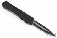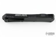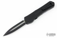 This Manticore-X by Heretic Knives features a battleworn black finished double-edged blade. The handle has a black battleworn aluminum frame with black stainless steel hardware and tip down clip. Comes with original box and papers. #03139.  Excellent Condition.