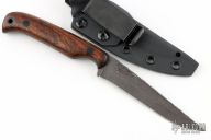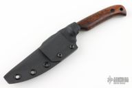 This Custom Boogeyman by Half Face Blades features a dark stonewashed blade with a fileworked spine, .153" blade stock, .848" blade depth, full tang construction.  The handle has ironwood scales with black pins.  Comes with a kydex sheath with clip. Excellent condition.