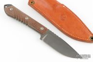 "In the Chris Reeve Knives tradition of simple, elegant and functional, the Nyala is a modern version of a classic skinner. Featuring the utility of a drop point and enough belly for skinning, this all-purpose knife will prove useful in a multitude of applications. The integral handle and black PVD blade of CPM S35VN is sturdy and practical - spiral and lineal grooves in the brown canvas micarta handle provide positive grip - good knife control is provided by serrations on the spine. The high quality sheath is made of leather treated to be water resistant." Includes a brown leather sheath and original box and paperwork dated March 18, 2015. Excellent Condition.