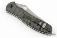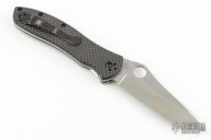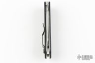 This Bradley2 liner lock folder by Spyderco features a satin finish blade with thumb hole. Carbon fiber pattern G-10 scales, polished stainless steel liners, and black coated stainless steel pocket clip, tip up carry, 4 way reversible. Strong lock up, nice detent and blade seating is center. Excellent condition. Comes with original box and papers.
