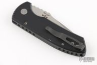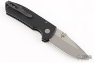 The Protech Knives SBR (Short Bladed Rockeye) is a utilitarian, compact, every-day-carry version of the Les George iconic Rockeye model, retaining the classic design in a smaller package. The SBR has the same American innovations as the Rockeye, featuring modern materials, high-tech manufacturing, advanced coil spring mechanism, and quality American production. This version of the SBR has a two-tone, stonewashed/satin finished S35VN stainless plain edge blade, black anodized aluminum handles and black hardware.  Includes the original box. Has some light scuffs and scratches, great condition otherwise.