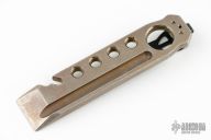 Titanium Prybar by John Gray. Bark finished and bronze anodized, bottle opener and black clip. Has some scuffs, otherwise good condition.