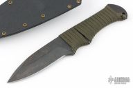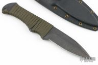 This Blood Shark by Tracker Dan features a black blade with .184" blade stock and .997" blade depth. The handle has flat paracord wrap. Comes with a kydex sheath and the knife will fit in either direction. Has a couple light scuffs, otherwise excellent condition.