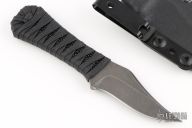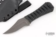 This Pocket Bowie by Auxiliary Manufacturing features an acid tumbled blade with .195" blade stock and 1.225" blade depth. The handle has a cord wrapped handle over stingray skin. Comes with a kydex sheath with clip. Excellent condition.