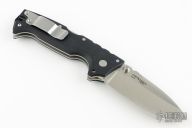 If you're planning a big game hunt, a dangerous expedition, or an exciting adventure and want to carry a high-performance folding knife that wont draw unwanted attention look no further than Andrew Demkos AD-10. Resembling Andrews massive 4-Max, but reduced in size and weight, the AD-10 features an ultra wide ground blade that terminates in a sturdy (yet innocuous) drop point. Ground thin at the edge and honed to razor sharpness, the AD-10 delivers unprecedented cutting, shearing, and piercing power in a sub 4-inch blade but remains remarkably resistant to bending, breaking or chipping. The handle of the AD-10 is likewise strong and user friendly, with heat-treated, full-length aluminum liners, 3D machined G-10 scales, and oversized pins and bolts; it fits snugly and securely in the hand due to its precise contouring and integral finger guard. No folder would be complete without a reliable locking mechanism, so we have incorporated Andrews famous Tri-Ad lock. Its been proven over time to be unsurpassed in strength, shock resistance and durability, and offers unrivaled protection for your irreplaceable fingers. And, to assure lightning quick deployment and convenient carry, we have equipped the AD-10 with an ambidextrous thumb stud and dual pocket clips.