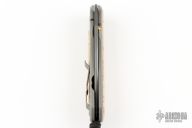 The idea behind the Sebenza has never wavered: to craft the best pocket knife in the world. Premium materials, paired with pristine finishes, and a bank-vault lock-up— all within an incredibly light, precision-made tool. That commitment continues with the new Sebenza 31 with a Ceramic Ball Interface. Like the very first Sebenza, it delivers the same warm “click” and heirloom quality produced from aerospace tolerances. The Sebenza 31 brings finer details to an already fine knife — and another steady, reliable step forward. This one has a Chad Nichols Stainless Raindrop Damascus blade, and bead blasted titanium frame with box elder burl inlays. Comes with original box, leather sheath and papers dated March 14, 2022. Excellent condition.