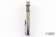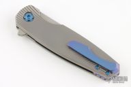 This Morpheus by Holt Bladeworks features a near mirror polished stonewashed blade with a notched thumbrest and flipper tab. The handle features a "field burnished" titanium frame with nude finish tip up pocket clip and hardware. Nice detent, lock up and blade seating. Includes the original zipper case and COA. Excellent condition.