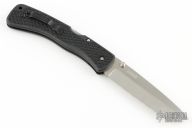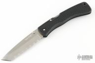 This Voyager by Cold Steel features a satin finished fully serrated tanto blade with dual thumbstuds. The handle has a black FRN frame with tip up clip and lanyard hole. Japan Made. Comes with original box. Excellent condition.